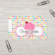 © Socialite Designs. Whimsical cupcake, with swirl icing and cherry, business cards ready for you to personalise for your business. Background has a fun and colourful argyle / diamond pattern. Font style and colour can be changed. Need HELP with customising? Please do not hesitate to contact me with your requirements.