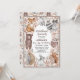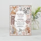 Celebrate your little adventurer's milestone with a charming invitation that captures the spirit of a magical woodland journey. This delightful invitation features a whimsical gathering of adorable woodland animals, each lovingly handcrafted in soft and dreamy watercolors. The sweet faces of a curious fox, a playful rabbit, a mischievous squirrel, a gentle bear, a chirpy bird, a wise owl, a masked racoon, and a spiky hedgehog will immediately capture the hearts of your guests. Surrounding the woodland creatures is a delicate arrangement of autumn foliage, embracing the beauty of the changing season. The earthy tones and warm hues of the foliage complement the watercolor illustrations, adding a touch of cosiness to the overall design.