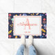 Whimsical autumn forest mushrooms watercolor illustration doormat featuring your personalised information.