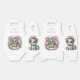 A charming green dinosaur with big, expressive eyes sits atop a fluffy pink cloud, surrounded by vibrant pink flowers with detailed petals and bright yellow centres. Adorned with a cute pink bow, the dinosaur wears a gentle smile, adding to the dreamy and whimsical atmosphere. The soft blue and white cloud-filled background enhances the enchanting scene, making it a perfect design for a baby shower celebrating a little girl.