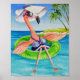 "Beach Babe Flamingo No. 3" Watercolor Art 8x10 Poster by artist Jean Weiner