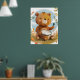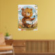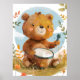 This enchanting nursery wall art features a playful bear joyfully playing a drum, depicted in a charming watercolor style. The scene captures the bear in mid-performance, surrounded by soft, pastel hues and delicate brushstrokes that create a serene and cheerful atmosphere. The bear's delighted expression and the gentle, flowing colours make this piece a perfect addition to any child's room, inspiring joy and imagination. Ideal for adding a touch of musical whimsy and woodland magic to your nursery decor.