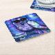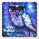 Whimsical Big-Eyed Abstract Owl Blue Green Purple Paper Coaster