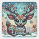 Whimsical Big Eyes Christmas Reindeer Folk Art Square Sticker
