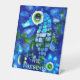 Whimsical Big-Eyes Seahorse Art Blue Personalised Pedestal Sign