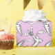 Cute black and white outline hand drawn birds flying in the clouds patterned wrapping paper. Customise with your own custom colour background currently light purple pink. Original ink drawing and design by Sarah Trett. www.sarahtrett.com