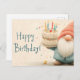 Whimsical Birthday Greeting: Gnome Holding a Cake Holiday Postcard