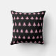 A pattern of light pink Christmas trees appears on this black throw pillow.