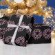 Whimsical Black and Pink Christmas Wreath Pattern Wrapping Paper