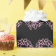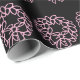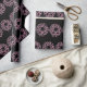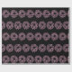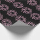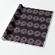 A pattern of light pink Christmas wreaths appears on this black wrapping paper.