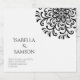 Celebrate your special day with a touch of elegance and sophistication with our unique and artfully designed wedding invitation set. Featuring a pristine white background adorned with a mesmerizing black rotational symmetry pattern of swashes and dots making up a flowery pattern, this invitation beautifully captures the essence of timeless romance and modern charm.
