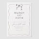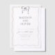 Design feature a simple black and white design with a cute hand drawn wavy border and a small black bow at the top. Using a clean classic font and handwritten calligraphy script. It looks elegant but also a little playful.
