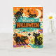 Whimsical Black Cat Atomic Age Halloween Card