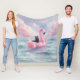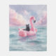 Wrap yourself in coastal whimsy with this watercolor blanket featuring a black cat floating on a pastel flamingo in gentle ocean waves. Soft pink and blue tones, delicate brushstrokes, and serene seaside details make this blanket a cosy, playful accent for any room.