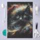 Whimsical Black Cat Santa Christmas Hat Decoupage Tissue Paper