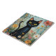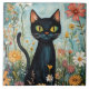 Whimsical Black Cat with Wildflowers Illustration Tile