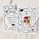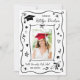 Celebrate your graduate with this fun, playful graduation invitation featuring a quirky hand-drawn doodle frame and wavy lines in crisp black and white. The front highlights the graduate’s photo with whimsical sketches—grad cap, rolled diploma with a bow, stars, sparkles, hearts, tiny flowers, and curly squiggle streamers—for a unique illustrated look that feels modern and custom. The back includes a coordinating design with “Grad Party” invitation wording and all the party details.