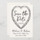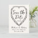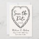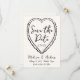 Announce your wedding with this retro and whimsical save the date card, featuring "Save the Date" in handwritten black script encircled by a hand-drawn heart on a light cream background. This unique design blends timeless elegance with playful charm, making it perfect for couples who want their wedding announcement to stand out. Personalise the card with your names, wedding date, and location to create a memorable keepsake for your guests and set the tone for your special day!