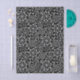 This unique pattern features stylized spiral flowers and simple leaf accents. The dense white design sits on a clean black background, creating a whimsical and graphic look. This pattern is modern, fun, and eye-catching, with a cool, flowing style.