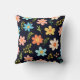 A floral pattern set against a dark background, likely black or navy blue. The pattern features various simple, stylised flowers in soft, pastel colours like pink, peach, yellow, orange, and light blue. These flowers are scattered across the background, along with green leafy branches and small sprigs of berries, creating a lively and colourful design. The flowers vary in size, and the overall effect is playful and vibrant, evoking a cheerful and whimsical mood. Whimsical Blossoms on Midnight Blackground Wrapping Paper