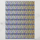 Stylised and whimsical hand-drawn peacock feather pattern in blues and gold.