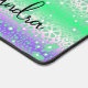 Whimsical girly desk mat done in a green and blue floral abstract design. Personalise the name at the bottom of the mat, to suit your needs. Great gift idea for her.