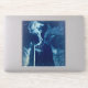 This cyanotype photograph of Bubba the cat is whimsical and captures a poignant scene of a cat gazing out of a window, evoking a sense of melancholy and introspection.
