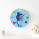 Whimsical Blue Cat Clock with Rainbow Hearts