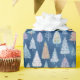 "Featuring a charming pattern of stylised Christmas trees in various shades of blue, this design blends festive cheer with a cool, modern aesthetic. Perfect for winter lovers, minimalists, or anyone looking for a fresh take on holiday wrapping. Great for wrapping presents for family, friends, or kids — this unique paper brings joy and style to every gift under the tree."