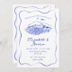 Whimsical Blue Doodle Vineyard Wavy Border Wedding Invitation