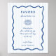 Whimsical Blue Hand Drawn, wedding favours poster. Features, light blue stripe pattern background and French Royal blue coordinating text and elements. Fonts and illustration colours can be customised.