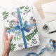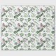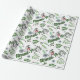 Whimsical Blue Flowers Rabbit and Forest Leaves Wrapping Paper