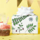 Whimsical blue flowers, a rabbit and forest leaves make a pretty gift wrap for a child or even an adult
