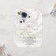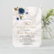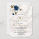 Whimsical Blue Gold Floral 50th Birthday Invitation