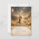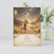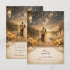This romantic design features a breathtaking starry night sky over a serene lake, capturing a magical and whimsical atmosphere. The scene is beautifully framed by lush white roses and rustic pampas grass, all illuminated by the warm, golden glow of vintage lanterns. Perfect for a fairytale or woodland-themed celebration, this elegant aesthetic combines deep blue, gold, and beige tones for a timeless, celestial look. This template is fully personalizable, allowing you to easily edit names, dates, and all event details to suit your special day. This high-quality artwork is uniquely created with generativecontent.