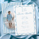 Celebrate your love with this whimsical blue handrawn and hand written wedding photo save the date card design. Featuring a delicate floral border and charming hand-drawn bow details, it is perfect for a romantic garden ceremony. This elegant, coquette-inspired aesthetic offers a timeless look for your unique celebration. Created by Simply Farmhouse Press.