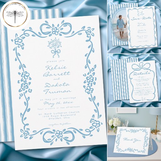 Whimsical Blue Hand Drawn Floral Stripe WeddingDesigned by Kathe Santillo