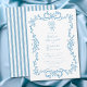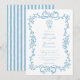 Whimsical Blue Hand Drawn Floral Stripe Wedding Invitation