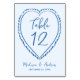 Guide guests to their seats with these whimsical wedding table number cards designed to coordinate with playful, modern wedding décor. The design features a hand-drawn blue heart surrounding the table number displayed in a handwritten blue script on a light blue background, with the couple’s names and wedding date shown below for a cheerful and personalized touch. The design repeats on the back for a cohesive and polished look throughout your reception. Ideal for couples planning a fun, romantic celebration, these wedding table numbers add color and charm to your reception tables. This card measures 3.5"x5". Edit each table number individually and add them to your cart to ensure a smooth ordering process.