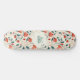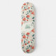 Immerse yourself in a whimsical fusion of colour and pattern with this unique skateboard showcasing blue leaves and red flowers arranged in a paisley-like style. Accentuated by artistic paint dots on a creamy white background, this pattern exudes a blend of vintage charm and contemporary flair. Ideal for adding a touch of artistic elegance to any space, this design captures the essence of creativity and style.