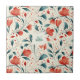 Whimsical Blue Leaf & Red Floral Pattern Tile