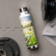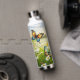 Water bottle featuring a vivid, painterly illustration of butterflies dancing over a field of white daisies on a sunny day. The striking contrast of warm amber and cool teal create a peaceful fresh spring or summer atmosphere. Great for any nature enthusiast.