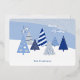 A card with blue winter skies and a forest of stylised trees. This clean-line design shows three shades of blue across the canvas and three shapes of decorated trees. The foil adds the final touch of sparkle (especially silver) on the winter scene. Look for the matching envelope to complete your Christmas correspondence!