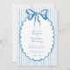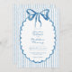 This whimsical invitation features a soft blue watercolor bow and a playful scalloped oval frame against a classic blue and white striped background. Perfect for a wedding with a preppy or coastal aesthetic, this charming design provides a sweet, hand-painted look for your special celebration. Created by Simply Farmhouse Press.