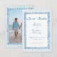 This whimsical photo wedding save the date card features a soft blue, playful scalloped rectangle frame against a classic blue and white striped background. Add your favorite couple photo to the frame on the back. Perfect for a wedding with a preppy or coastal aesthetic, this charming design provides a sweet, hand-painted look for your special celebration. Created by Simply Farmhouse Press.
