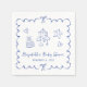 Whimsical Blue Wavy Frame Baby Boy Shower Napkin