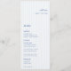 Whimsical Blue minimalist, wedding guest place card and menu. Features, French Blue typography and light blue stripe pattern backgrounds. Fonts and background colour can be customised. Please note: guest names must be entered and added to your cart individually.
