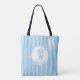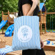 Whimsical Blue White Stripe Preppy Monogram Tote Bag