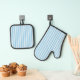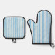 Whimsical Blue White Stripe Preppy Oven Mitt & Pot Holder Set