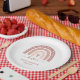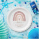 A girly and whimsical party paper plate with blush pink rainbow design for a perfect it’s a girl baby shower celebration.